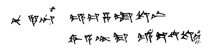 這句的發音,以拉丁字母轉寫是:Nu Ninda-an ezzateni waatar-ma ekuteni。Friedrich Hrozný嘗試從這句開始入手,Ninda是從阿卡德文中的借字,即麵包的意思,尾綴的-an是賓謂格(accusative)。Friedrich Hrozný留意到一個很奇怪的字,即句中第四個字:wa-a-tar。