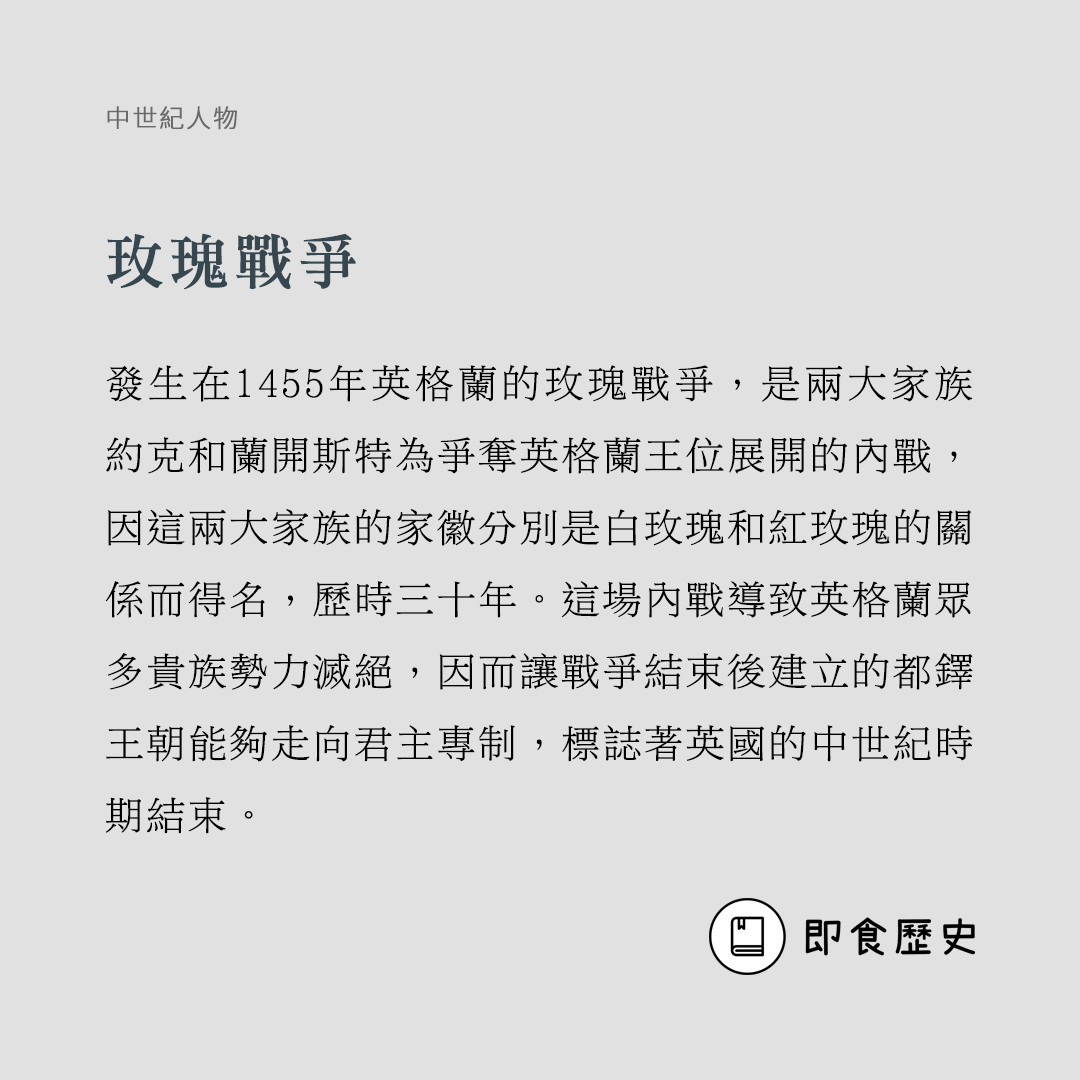 In war-of-the-roses-1 4 月 20, 2020 0 作者 seayu 八十後男生,生於香港,靠數學維生卻喜愛研讀歷史,在旁人眼中也許有點怪異。從小喜愛研究和感受歷史洪流裡的人和事,認為這個世界正在發生的事情,都能在人類的過去中找到一點端倪。 Website Facebook Instagram 相關文章 【世界遺產史】皇帝在看著你!不敢偷懶的鄂圖曼帝國議政大臣 11 月 30, 2025 【世界遺產史】阿拉伯傳統信仰中的「鎮尼」其實是什麼? 10 月 25, 2025 供奉著雙神的獨特神廟:古埃及考姆翁布雙神廟 10 月 24, 2025 留下回應